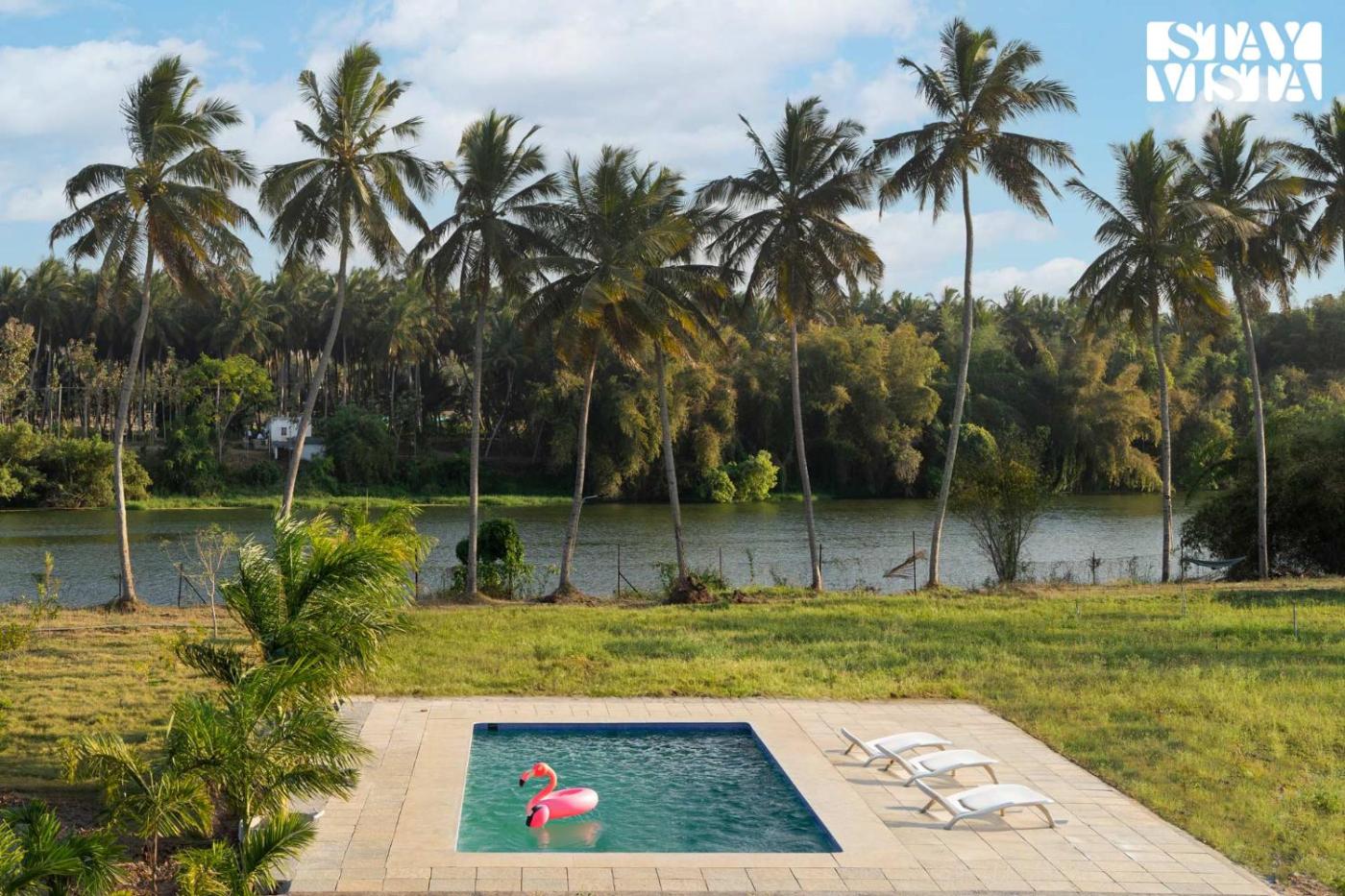 Offering an outdoor swimming pool and lake view, Golden Triangle by VEO - Part of StayVista isin HampÄpura, 34 km from Mysore Palace and 32 km from Civil Court Mysuru. The property is around 34 km from Dodda Gadiyara, 34 km from Mysore Junction Station and 35 km from Mysore Bus Stand. The villa offers rooms with air conditioning, free private parking and free WiFi.