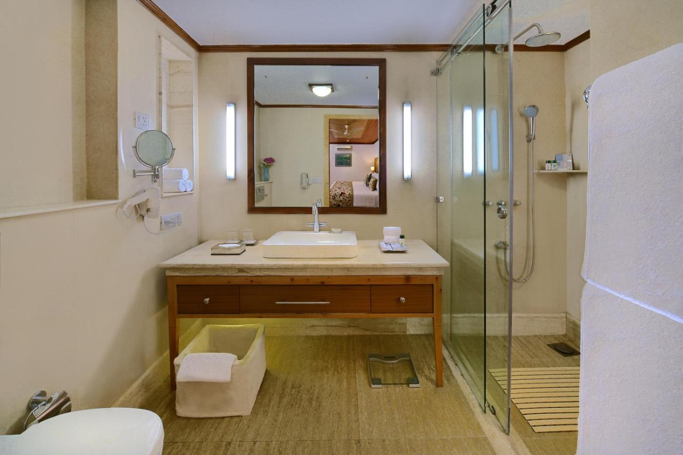 The property offers different facilities to their guest such as Free Wi-Fi, 24-hours Front Desk, Fitness & Health Centre, Spa & Wellness Centre, Travel Desk, In-Room Dining, Bazar (The Handicrafts Emporium). The property offers daily Indian, Continental, Vegetarian and Non-Vegetarian as buffet breakfast and dinner.